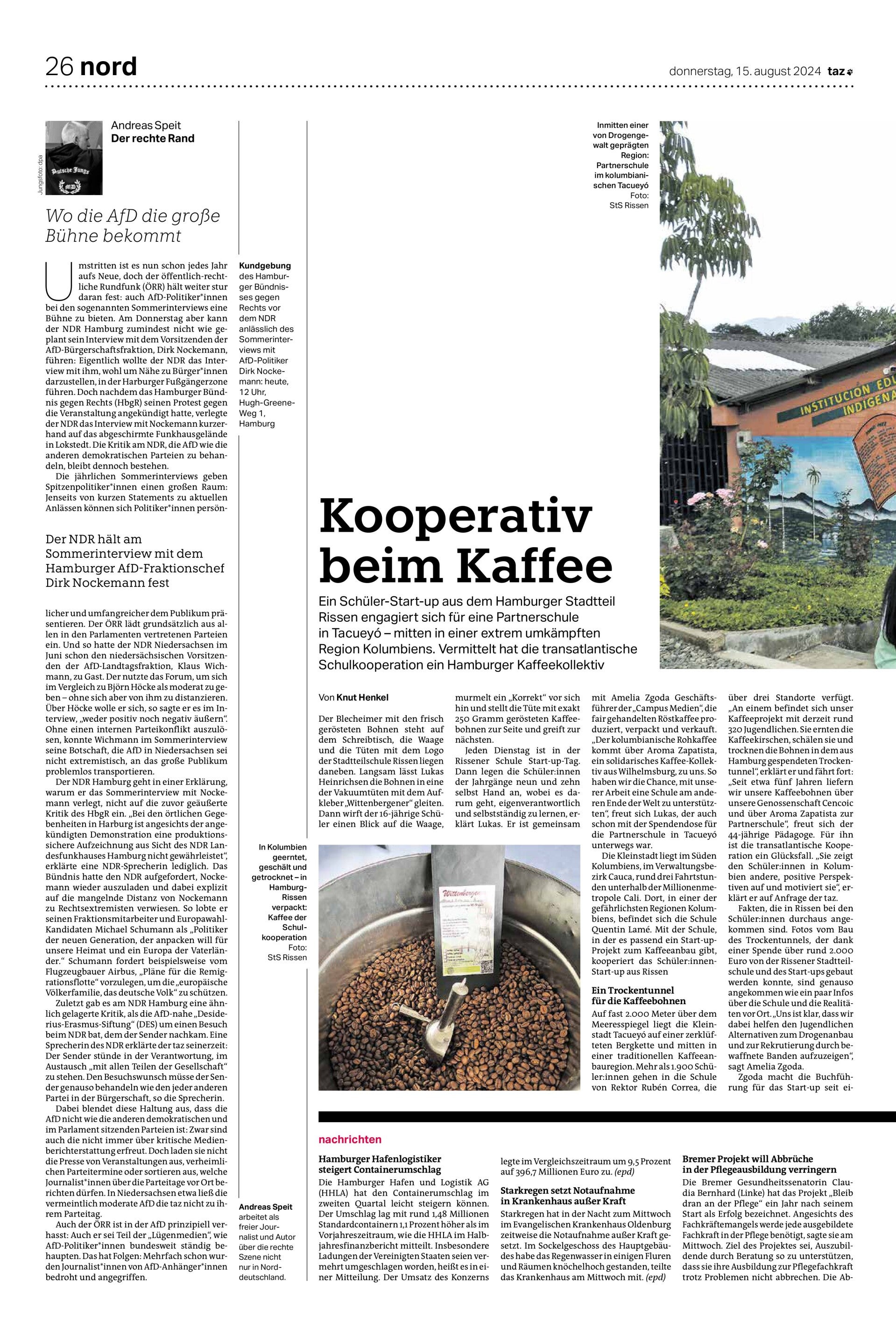 Wir nennen uns Coffee 4 Columbia , weil wir mit unseren Einnahmen die Schule in Tacueyo aus Kolumbien mit regelmäßigen Spenden unterstützen. Die "4" steht dabei für die 4 Abteilungen.